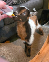 These goats are such an amazing addition to our farm. They're friendly with anybody, calm, playful, and love a good scratch! They also produce some nice rich milk that's not gamey, has more protein than normal milk, and is naturally lactose-free! If you're looking to add these amazing animals to your farm please contact us, and reserve a spot. We breed every fall and the babies are born around April-May.